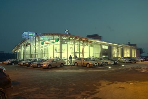 Автоцентр.Выполненные работы:Устройство кровли из ПВХ мембраны «Protan».