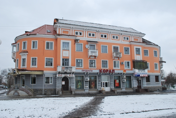 Жилой дом с продовольственным магазином на первом этаже.Выполненные работы:Реконструкция фасада.