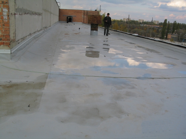 Административное здание.Выполненные работы:Ремонт кровли из ПВХ мембраны Protan.Площадь 1700 м. кв.