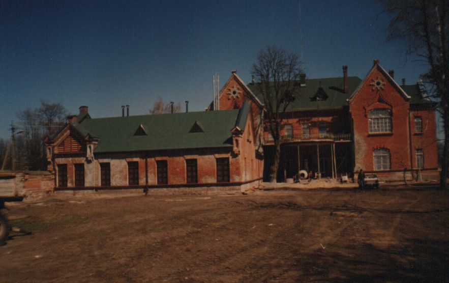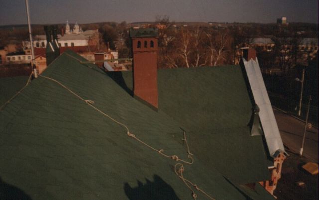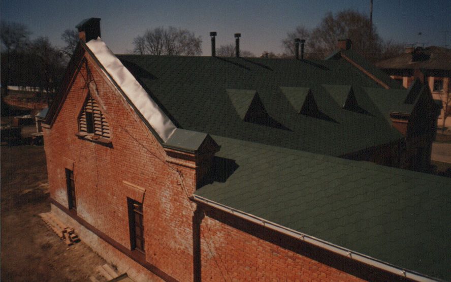 Бывший панский маеток Ремонт кровли: - ремонт стропил; - штукатурка труб; - устройство кровли с битумной черепицы 6 Сентября - 28 Декабря 2001 года 22 Января - 14 Апреля 2002 года
