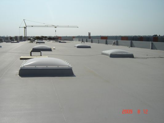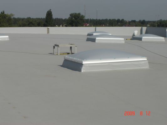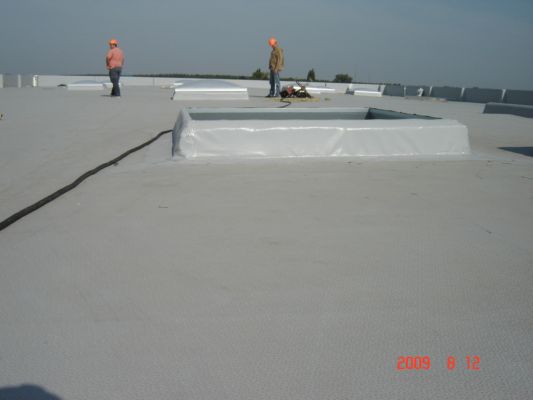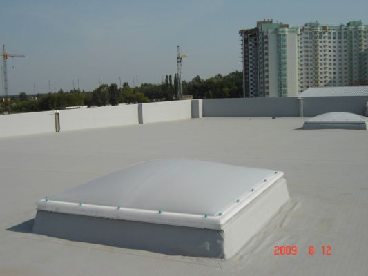 Устройство кровли из ПВХ мембраны «Protan» офисно-складского комплекса