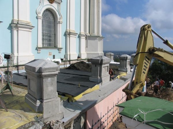 Устройство гидроизоляции покрытия паперти и стилобата из ПВХ мембраны Protan GG-2,0 мм. площадью 705 м2