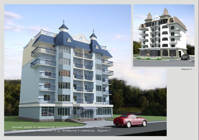Жилой дом.Адрес: г. Кременчуг, ул. Гоголя 1.Выполненные работы:Комплексное проектирование.